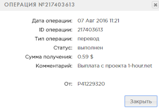 08.07.16 21:23 Account Receive +10.5 Received Payment 10.5 USD from account U12112343 to account U173****. Batch: 142439172. Memo: API Payment. Выплата с проекта 1-hour.net.
