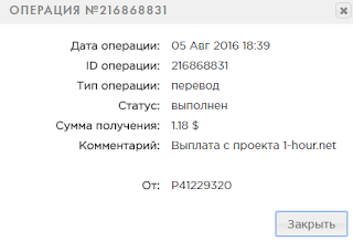 08.07.16 20:50 Account Receive +3.79 Received Payment 3.79 USD from account U12112343 to account U17755**. Batch: 142436924. Memo: API Payment. Выплата с проекта 1-hour.net.