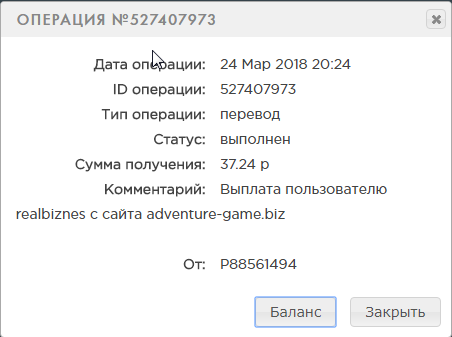 Comment: Выплата пользователю SoVeRR с сайта adventure-game.biz