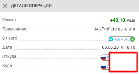 22.02.2019 0:31:24 поступление на сумму 99.2 WMR от корреспондента 086547494726