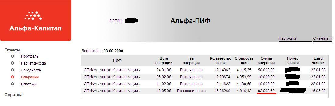 Вот пример работы с ПИФом Альфа-Капитал-Акции.