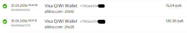 18:43 31.01.16 Receive 118333062 ALLIBIO Received Payment 0.56 USD from account U9269433. Memo: API Payment. User Alex--K.