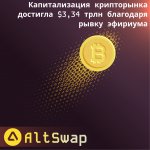 Капитализация крипторынка достигла $3,34 трлн благодаря рывку эфириума.