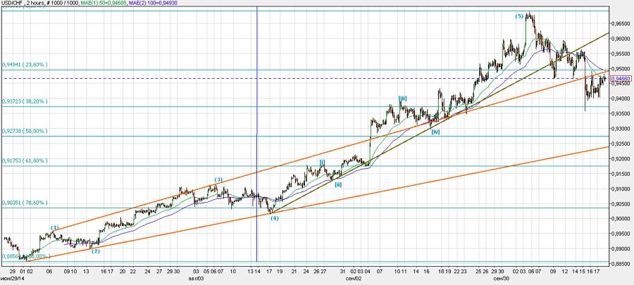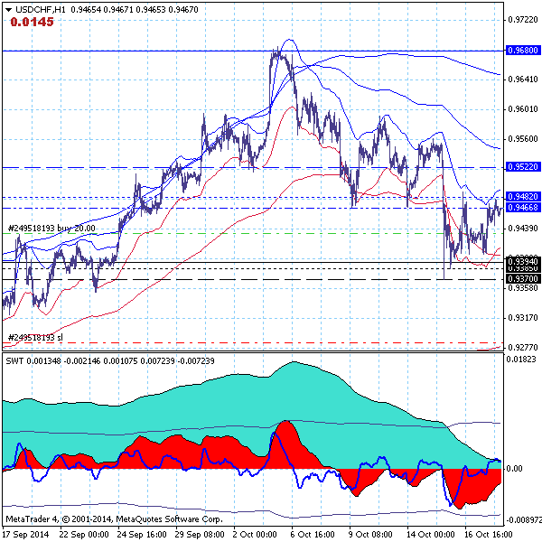 USDCHF – 20.10.14. Рынок продолжает боковое движение в коррекционном канале локального тренда 0.9385-0.9482