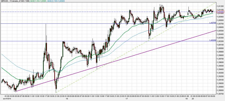 GBPUSD – 20.10.14. Пара продолжает тестировать верхнюю границу коррекционного канала краткосрочного тренда 1.5873-1.6112