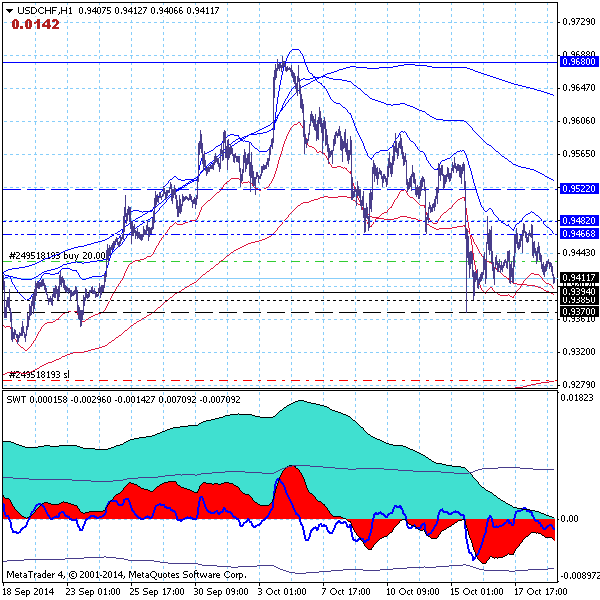 USDCHF – 21.10.14. Рынок продолжает боковое движение в канале 0.9385-0.9482, продвигаясь к нижней границе канала