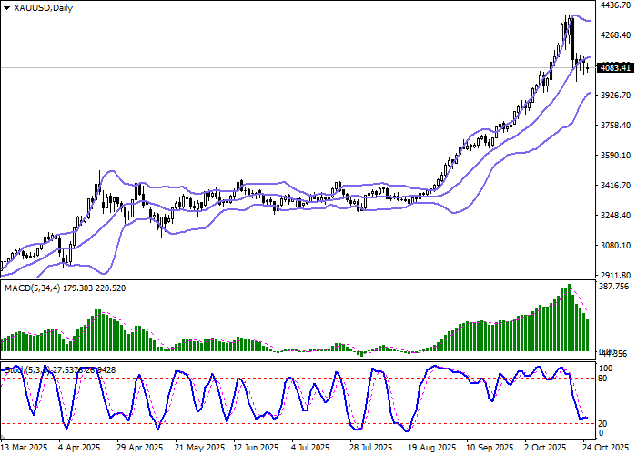 Пара XAU/USD консолидируется возле отметки 4075.00, ожидая появления новых драйверов движения: в фокусе внимания инвесторов находится заседание ФРС США, которое состоится в среду, 29 октября.