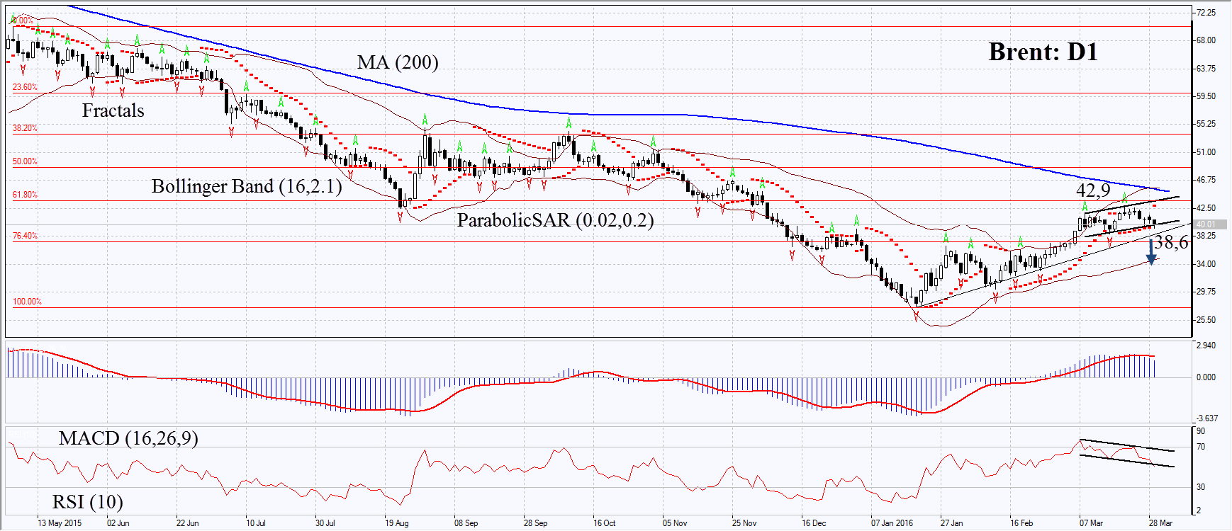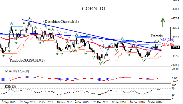 На дневном таймфрейме, Cotton: D1 корректируется наверх от минимума c 2009 года. Он превысил линию сопротивления нисходящего тренда. Индикаторы Parabolic и MACD сформировали сигналы к покупке. Индикатор RSI растёт, но ещё не достиг отметки 50. Дивергенций не наблюдается. Линии Боллинджера сильно расширились, что означает высокую волатильность. Они сохраняют наклон вниз. Мы не исключаем бычьего движения, если хлопок превысит последний верхний фрактал и первую линию Фибоначчи: 57,7. Этот уровень можно использовать в качестве точки входа. Первоначальное ограничение риска возможно ниже последнего нижнего фрактала и 7-летнего минимума, а также ниже сигнала Parabolic и линии Боллинджера: 54,3. После открытия отложенного ордера, стоп передвигаем вслед за сигналами Боллинджера и Parabolic на следующий фрактальный минимум. Таким образом, мы изменяем потенциальное соотношение profit/loss в свою пользу. Наиболее осторожные трейдеры после совершения сделки могут перейти на четырёхчасовой график и выставить стоп-лосс, передвигая его по направлению движения. В случае если цена преодолеет уровень стопа (54,3), не активировав ордер (57,7), позицию рекомендуется удалить: на рынке происходят внутренние изменения, которые не были учтены.