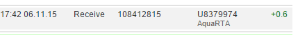 The amount of 0.88 USD has been deposited to your Perfect Money account. Accounts: U8379974->U6898***. Memo: Выплата с проекта AquaRTA. Date: 17:43 06.11.15. Batch: 108412960.