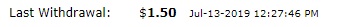 Withdrawal request $ 4.60 [cancel] Jul-13-2019 11:03:07 AM