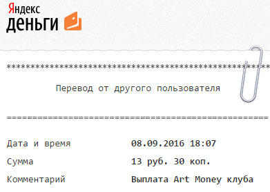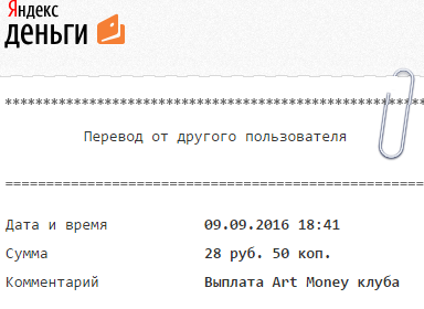 Комментарий: Выплата Art Money клуба