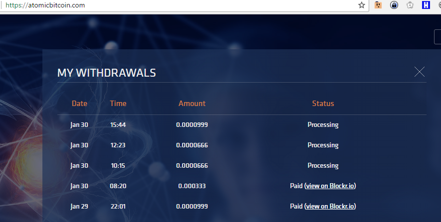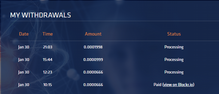 Jan 29, 23:42 0.000099 Bitcoin External account 1AdnmGaR2qVvpXqMS7vAVhke4fzriD8YBK CONFIRMED Details