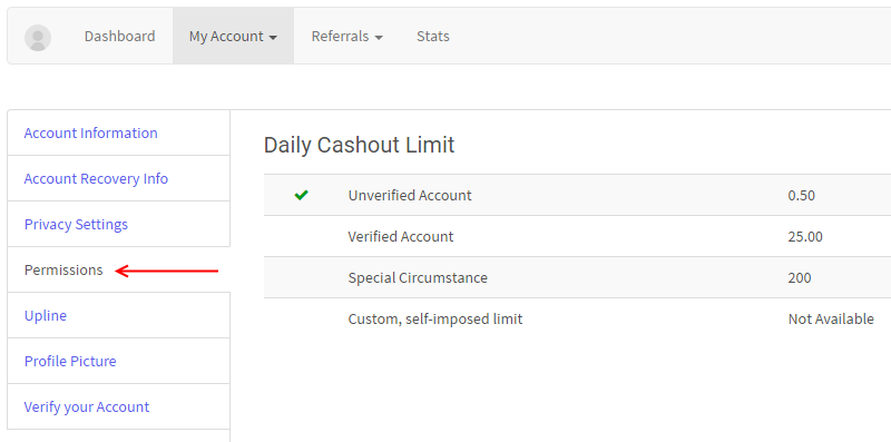 Там увидите лимиты на вывод средств для разных типов пользователей, и напротив того, какой у Вас тип профиля, будет стоять зеленая галочка.