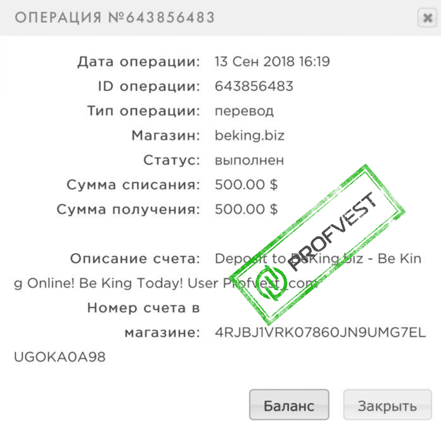 Comment: Withdraw to Profvest_com from BeKing.biz - Be King Online! Be King Today!