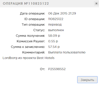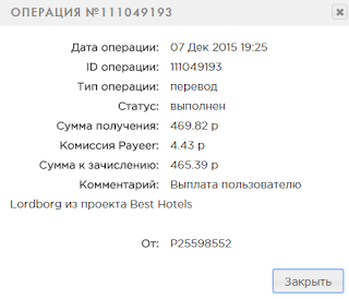 Комментарий: Выплата пользователю Monitorr из проекта Best Hotels