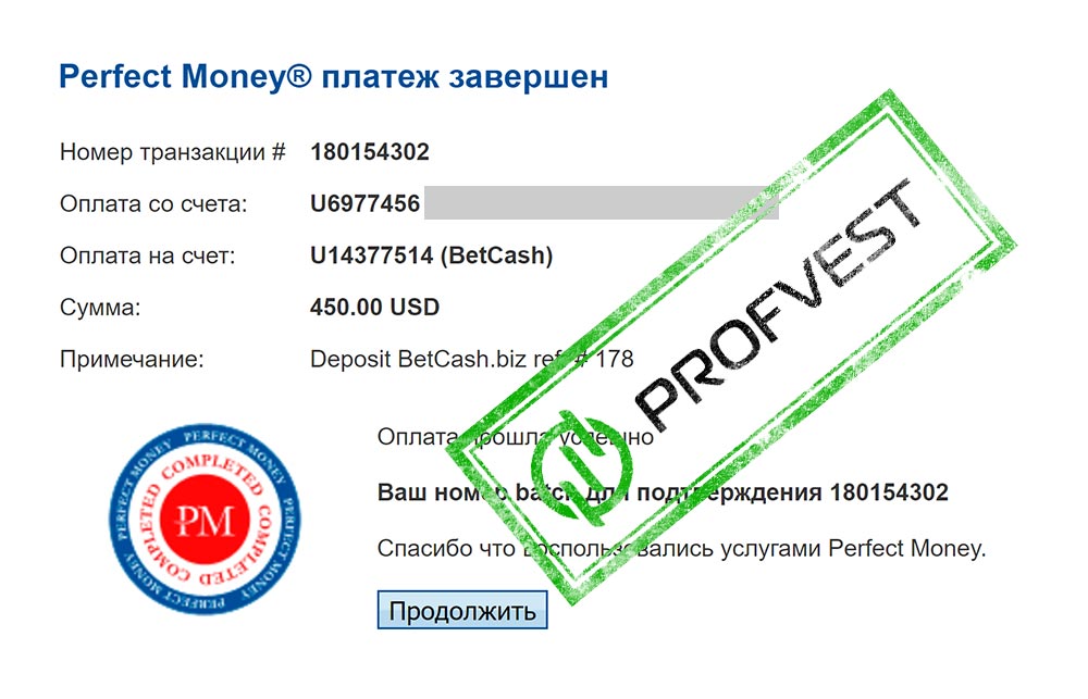 Примечание: Withdrawal BetCash.biz