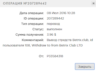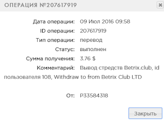 Comment: Вывод стредств Betrix.club, id пользователя 563, Withdraw to from Betrix Club LTD