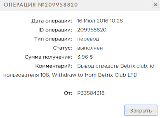 Comment: Вывод стредств Betrix.club, id пользователя 563, Withdraw to from Betrix Club LTD