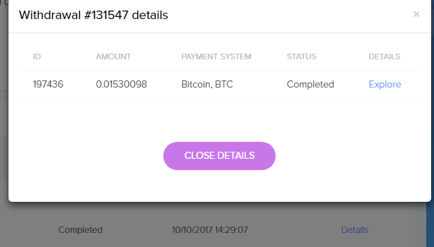 ID AMOUNT PAYMENT SYSTEM STATUS DETAILS