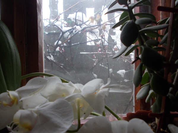 -2, мокрый снег 10 сантиметров, сильный ветер и цветущие деревья с проводами в снегу!:t-1doh: