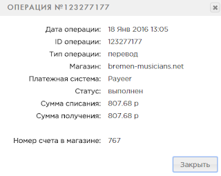 Comment: Выплата Juice с проекта Bremen Musicians