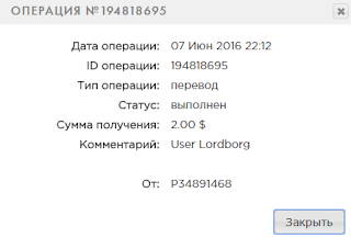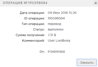 Выплата.The amount of 2.5 USD has been deposited to your Perfect Money account. Accounts: U10696275->U75XXXXX. Memo: API Payment. User Klo.. Date: 08:20 10.06.16. Batch: 136252930.