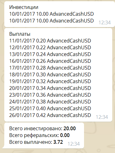 20:01 25.01.17 Receive 161593192 Received Payment 0.2 USD from account U12549667. Memo: API Payment. Invoice 5503, User196020930.