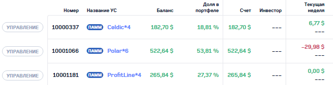 Все управляющие торговали на этой неделе и что радует, все в плюс.