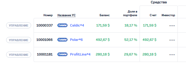 Усредненная торговля по управляющим, один мунусует, второй в плюсе и итоге профита пока нет существенного