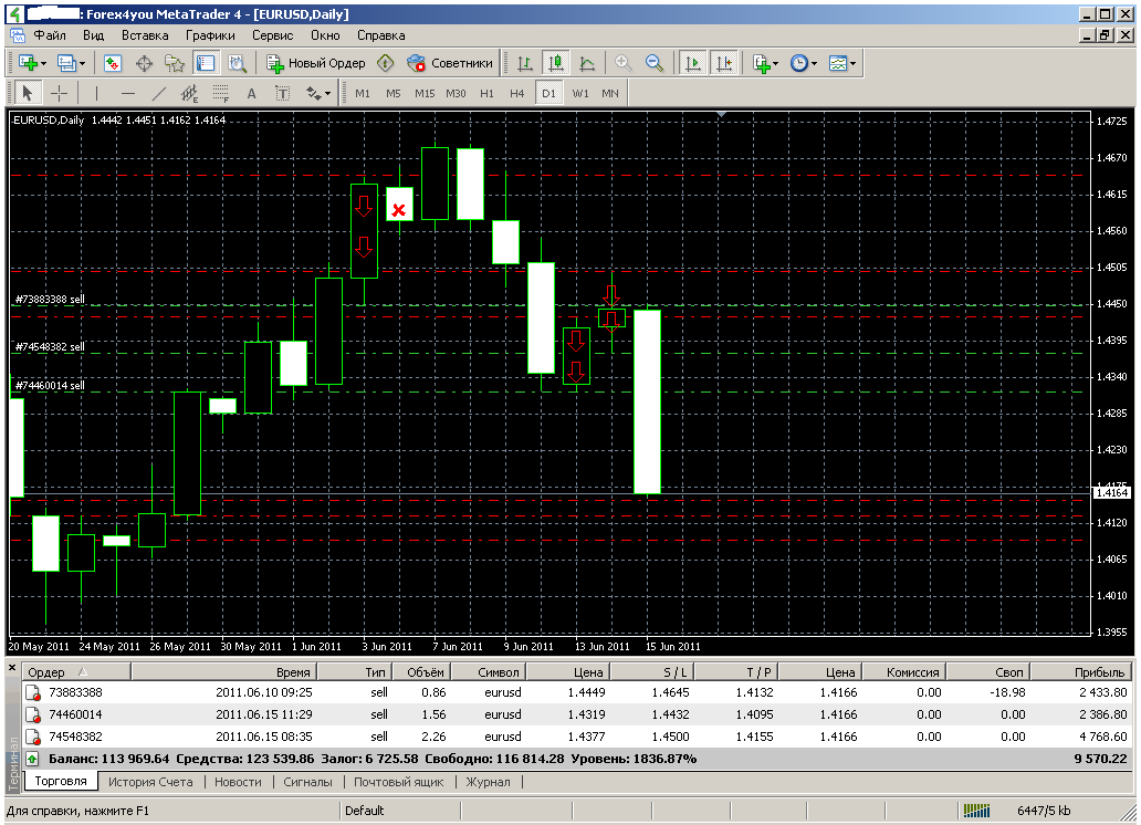 Что касается вопроса приумножения инвесторских средств. Ниже выложен скрин с личного кабнета ДЦ Ф4Ю с ссылкой на инструмент "разбор полетов" - алгоритм оценки торговых операций. Красным маркером подмеченно сверху вниз: