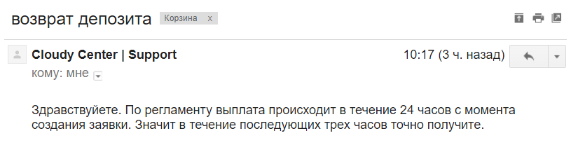 Прошло более 24-х часов. Депозита нет. Поддержка не отвечает.