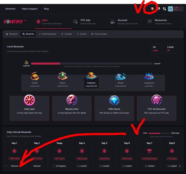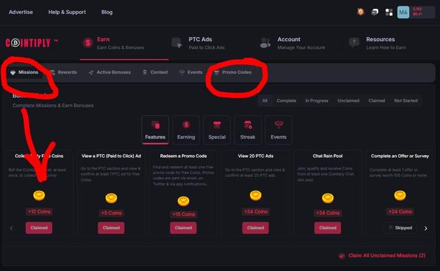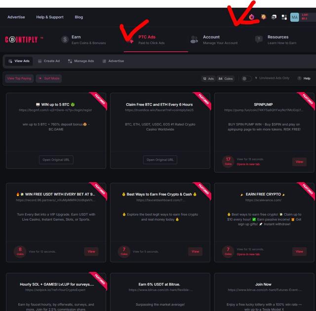 Зарабатывают на страничках Earn (Earn Coins Bonuses) и PTC Ads (Paid to Click Ads).