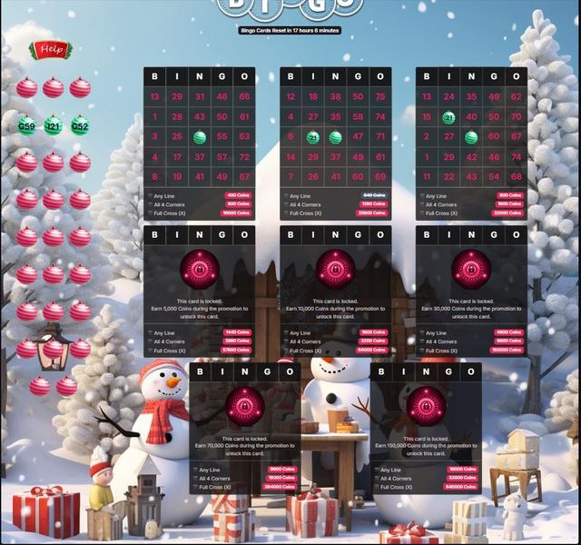 Сейчас раздаются предновогодние ежедневные Bingo лотереи (количество зависит от набранных coins) с периодическим выигрышем coins.