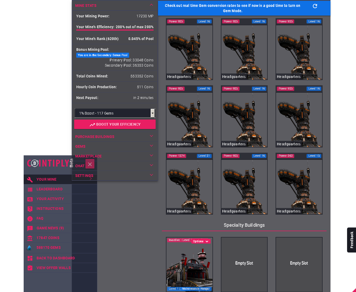 А если у меня только одна та первая шахта, которую я купил за бонусные коины при регистрации, я ее апнул до 34 уровня - есть смысл мне покупать те бусты чтобы погдать до 200% эффективность шахты? Или это актуально когда этих шахт много?