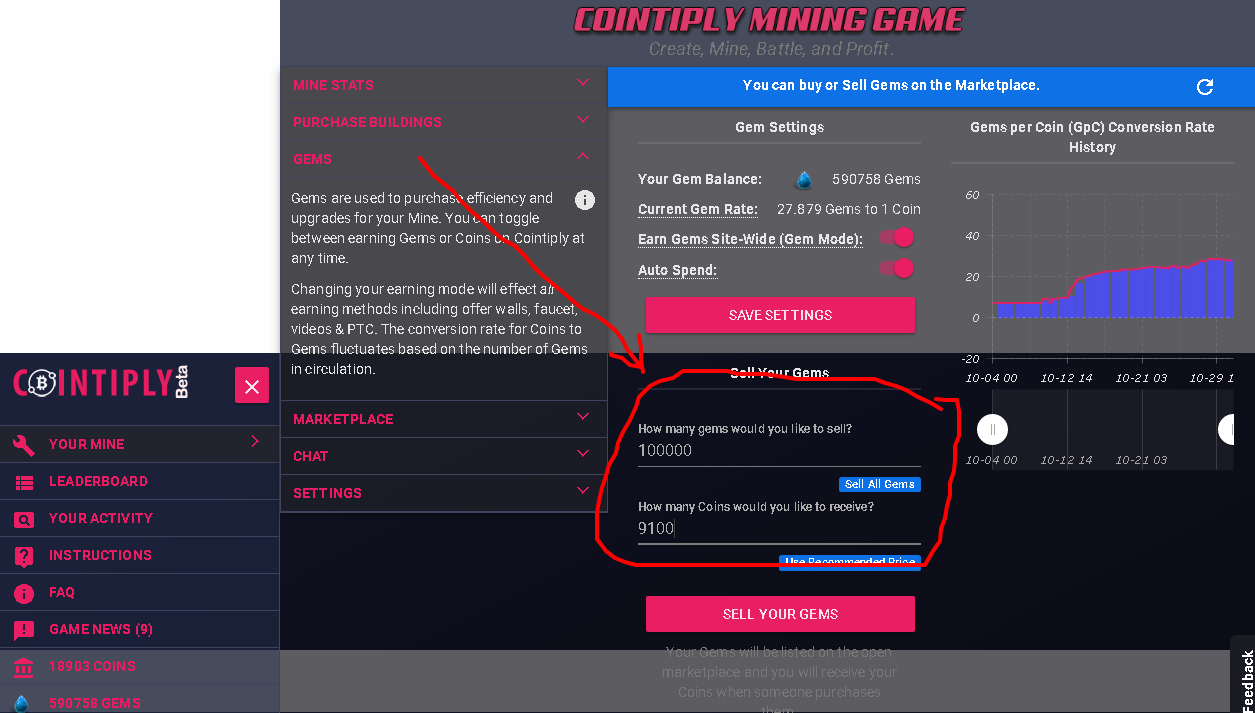 Вот тут выбираете кол-во камней и сколько за них хотите получить монет... А цену рассчитываете как я ранее писал.... смотрите верхние строчки где продают на рынке и подгоняете свою цену из расчета как выше писал...