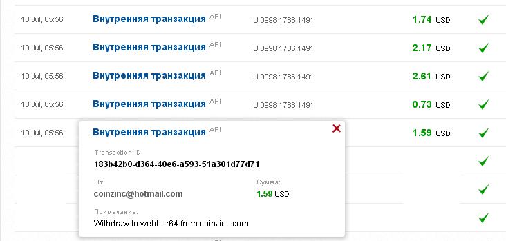 Memo : Withdraw to hyipcruiser from coinzinc.com