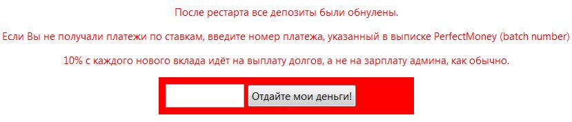 В личном кабинете под индикаторами вложено/выплачено есть форма для ввода номера транзакции. Зайдите в кошелек ПМ и найдите номер платежки, по которой отправляли в CrazyMoney деньги.что куда нужно вбить еще раз обїясните