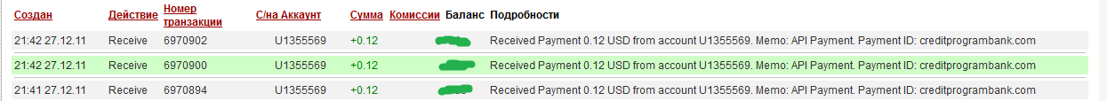 The amount of 23.81 USD has been deposited to your Perfect Money account. Date: 21:43 27.12.11. Batch: 6970926. Memo: API Payment..