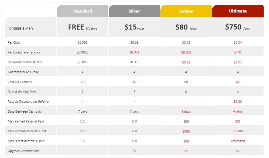 3) заработок от арендованных рефералов - $0.005 за клик (Standard Ads);