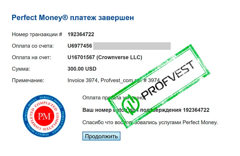 26.10.17 05:50 Receive Received Payment 49.98 USD from account U16701567 to account U319////. Batch: 192534328. Memo: API Payment. Crownverse LLC.