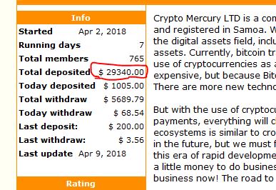 10.04.18 11:18;Account;Receive;Received Payment 8.1 USD from account U16345669 to account U1294000. Batch: 211156695. Memo: API Payment. Withdraw to allhyips from Crypto Mercury LTD.
