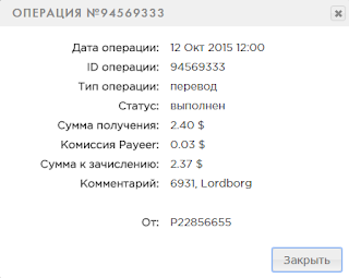 На Ваш кошелек P97***** Payeer перечислено 1.2 USD (batch: 94729580)