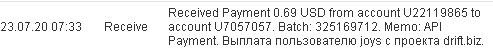 Комментарий: Выплата пользователю Perri с проекта drift.biz