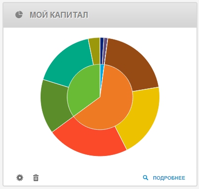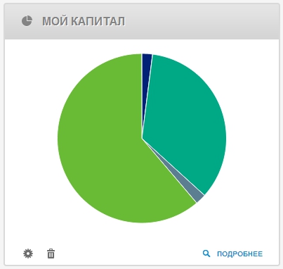 Это Виджет, позволяющий визуально отслеживать долевое соотношение Вашего капитала. Вам достаточно "бросить" взгляд на график и понять общую картины распределения финансов между управляющими компаниями.