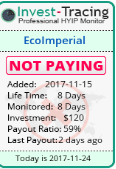 The amount of 15.95 USD has been deposited to your account. Accounts: U15746652->U4227222. Memo: API Payment. Withdraw to MYHYIPSNET from EcoImperial.. Date: 05:37 22.11.17. Batch: 195682406.
