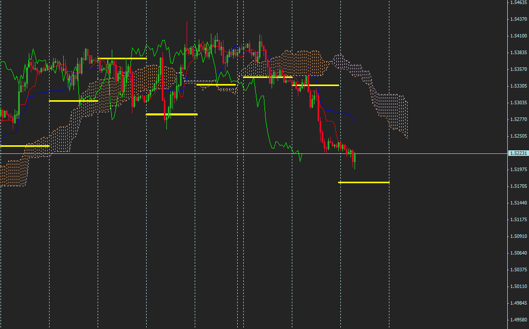 По моему, фунт нынче мутноват. Чего задумали фиг его знает, потому внутри дня особо не открываюсь. А вот если смотреть на среднесрочную перспективу, то сегодня открыл продажу до 1,50887 . Если что, то 300 пунктов мне не помешают. По Ишимоку мы опять пошли вниз, а это значит что пора отдавать нижние долги.