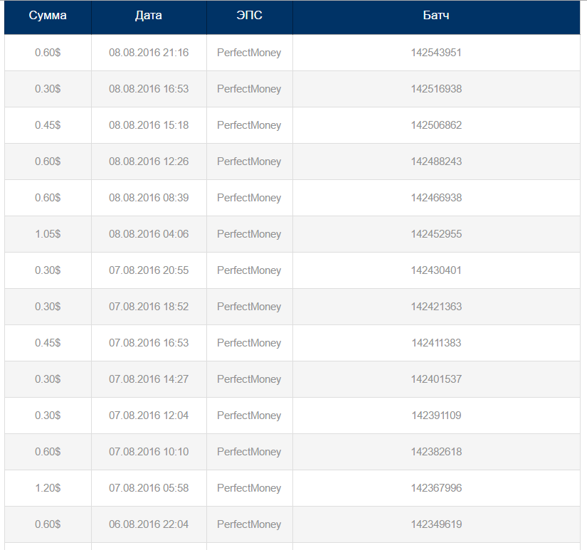 The amount of 0.6 USD has been deposited to your Perfect Money account. Accounts: U11770305->U1006****. Memo: API Payment. Withdraw from FAST-CASH.MONEY.. Date: 19:49 08.08.16. Batch: 142544603.