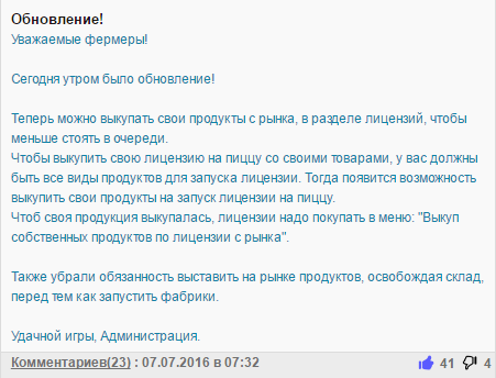 Печальная новость... Хотя кому как. Теперь богатые игроки будут выкупать только свои продукты и замыкать производственные цепочки, а бедные (у которых не хватает средств для производства всех компонентов для пиццы) будут сидеть в бесконечных очередях.