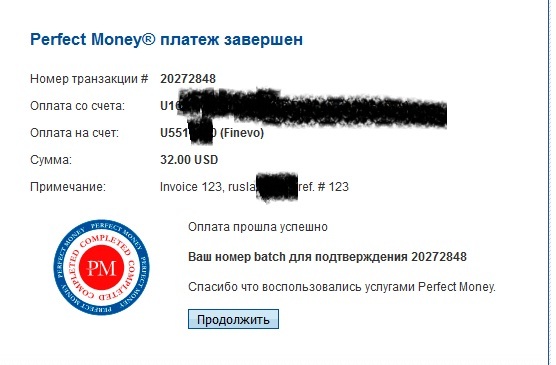 The amount of 20 USD has been withdrawn from your Perfect Money account. Accounts: U3642***->U5518350. Memo: Shopping Cart Payment. Invoice 231, Astek.. Date: 20:58 04.04.13. Batch: 20275262.
