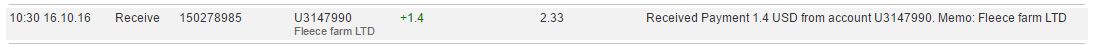 Received Payment 0.07 USD from account U3147990. Memo: Fleece farm LTD*